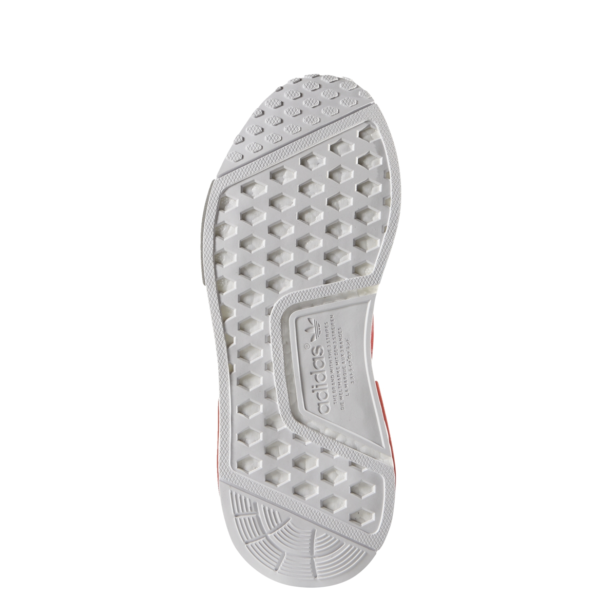 Buty Adidas NMD wdarły się przebojem na rynek i natychmiast stały się hitem. Od pierwszego wydania w grudniu 2015 roku ich popularność stale rośnie, a kolejne wydania i kolorystyki wyprzedają się niemalże natychmiastowo. Kluczem do sukcesu okazało się połączenie podeszwy z systemem boost™ odpowiadającej za wygodę oraz siateczkowej cholewki z neoprenu, która zapewnia elastyczność i przewiewność buta. Sama cholewka została ozdobiona odblaskowym, geometrycznym wzorem. Do tego dodano charakterystyczne elementy dla tego modelu, czyli umieszczone w podeszwie środkowej formowane wstawki z pianki EVA w dwóch kolorach. Kolorystyka prezentowana przez nas opiera się na czerwieni, białej podeszwie oraz czarnych i szarych wykończeniach.