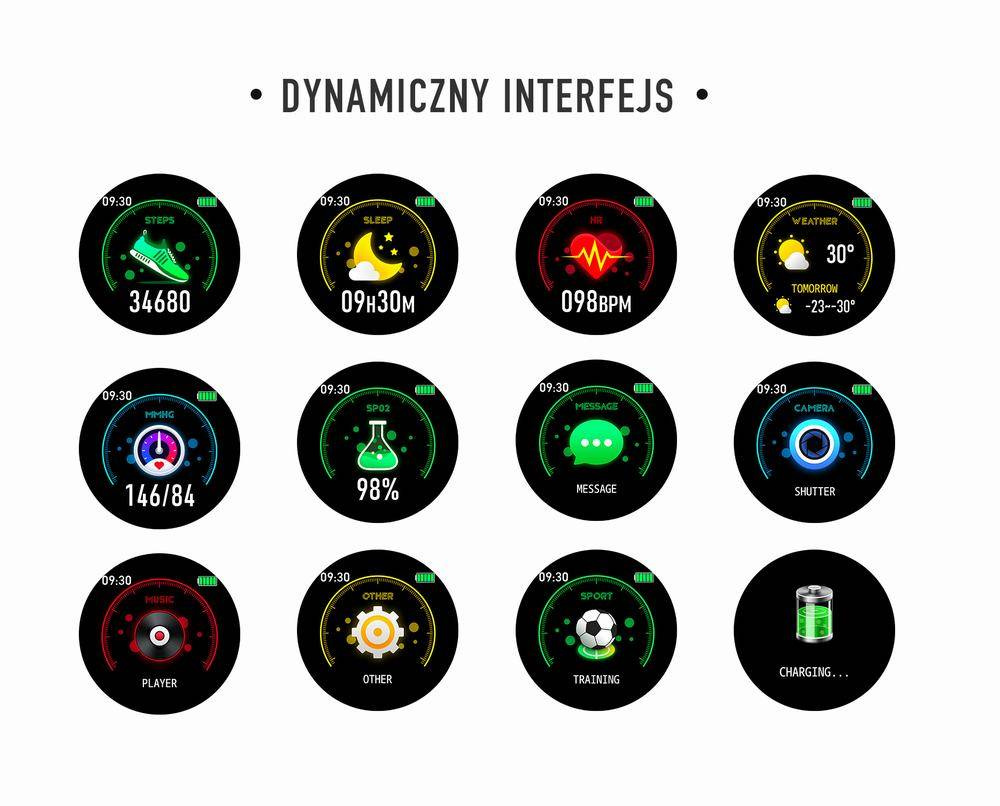 Dodatkowe funkcje: alarm, zdalne zdjęcia, sterowanie muzyką, zmienne motywy, znajdź urządzenie.