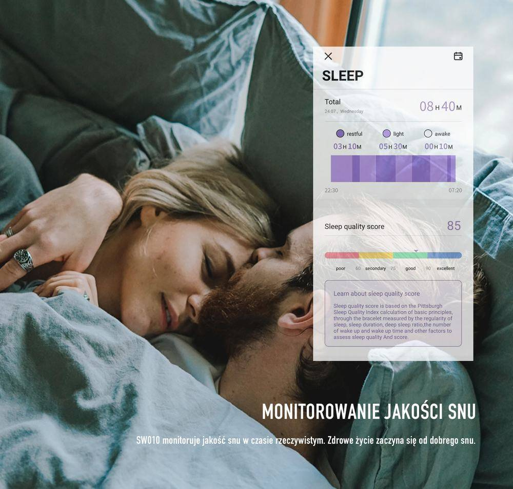 Opaskę możemy połączyć z dowolnie wybranym telefonem wyposażonym w systemy Android 5.0 lub IOS 9.0 lub nowsze (Np. Samsung, Huawei, Iphone)