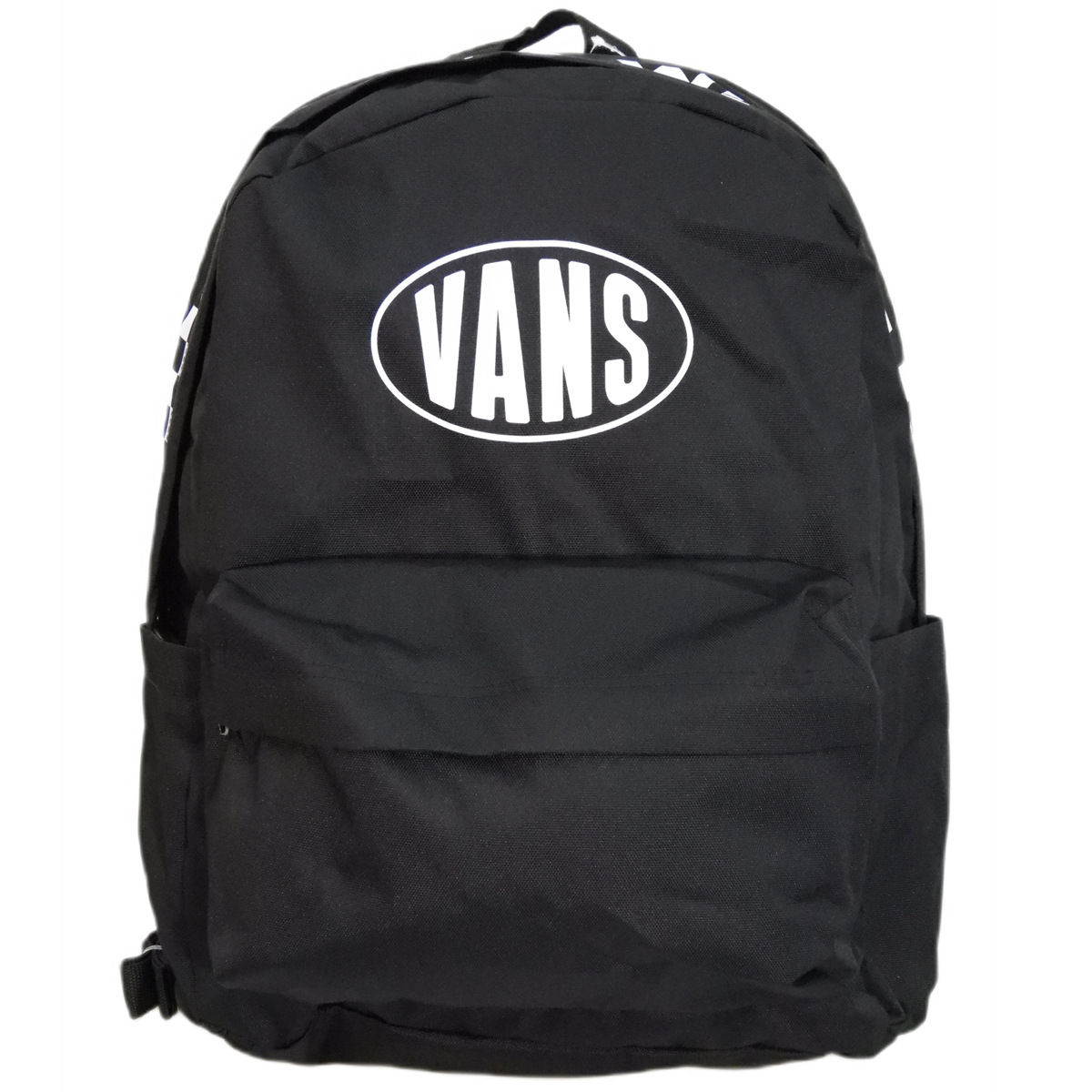Na froncie oraz w górnej części plecaka umieszczony duży nadruk Vans of the Wall.