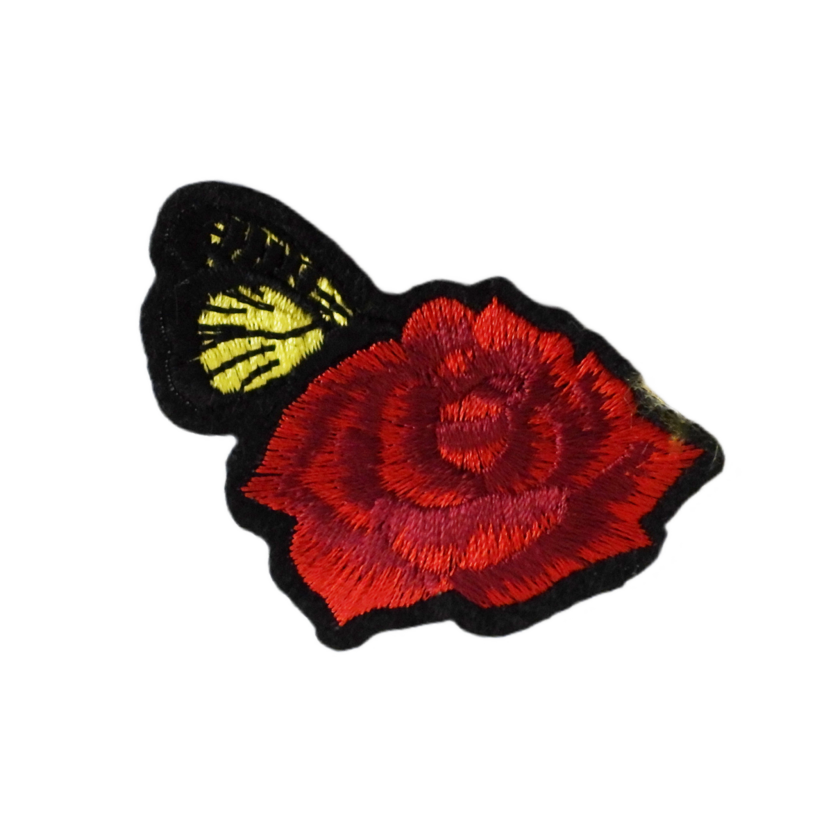 Na przedniej kieszeni naniesiona została oryginalna aplikacja w kształcie czerwonej róży z motylem.